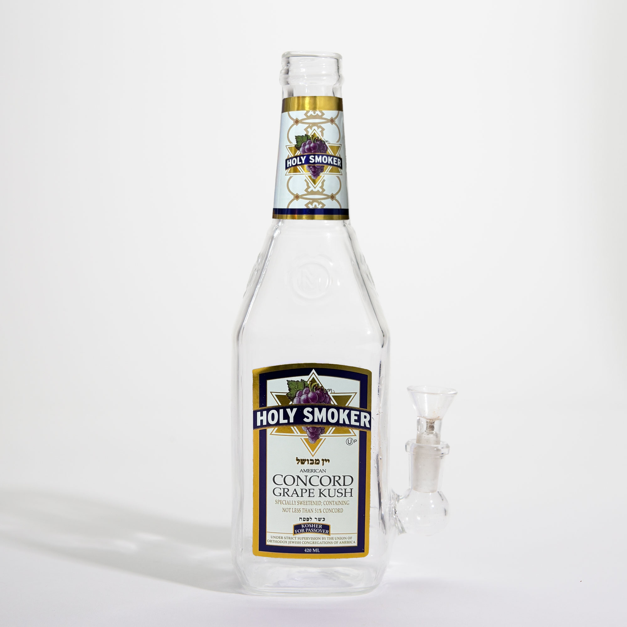 A kiddush cup like no other; made from deep-purple borosilicate glass, gift-boxed, and fully functional as both a wine glass and a pipe.